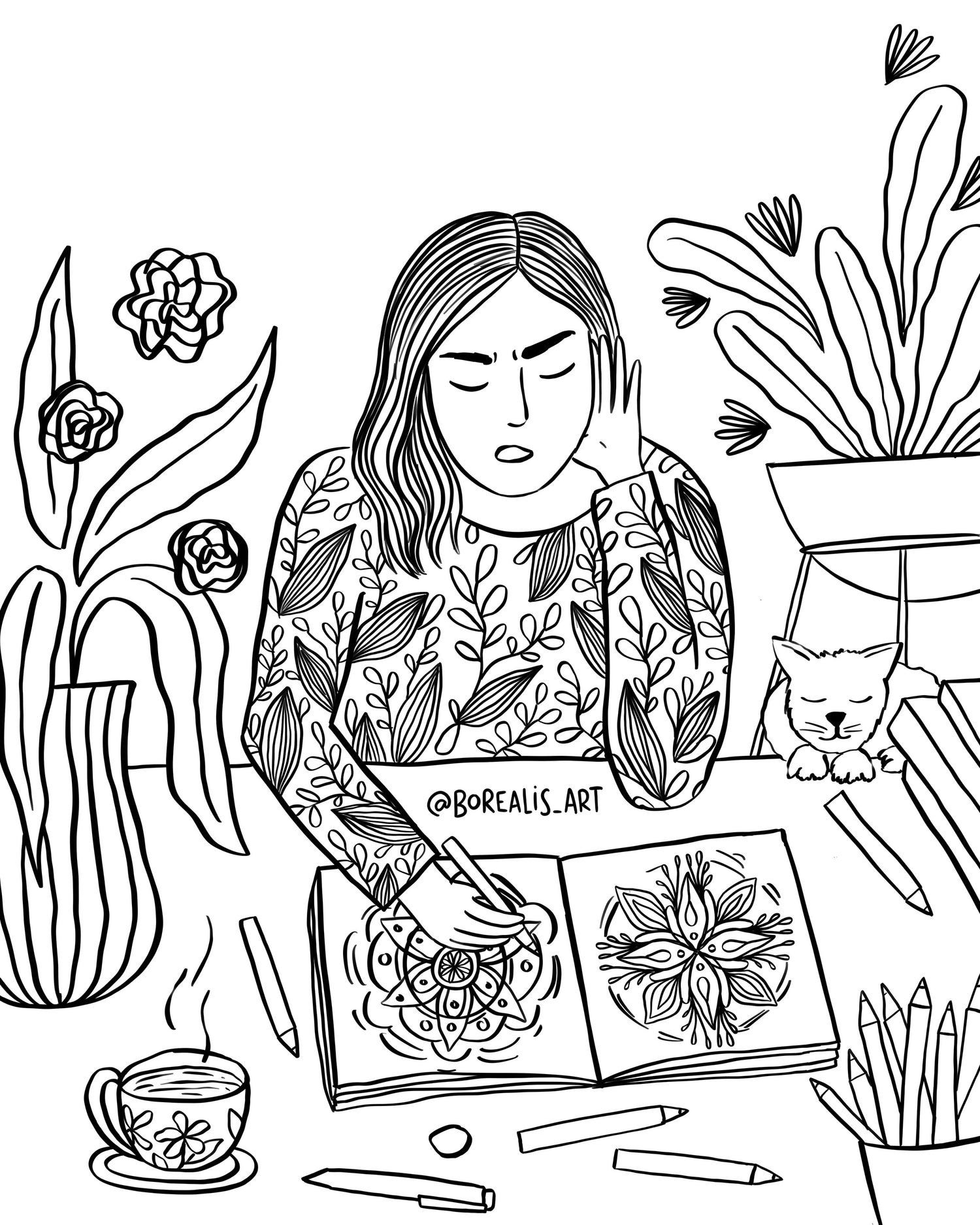 Hola! Aquí vas a encontrar dibujos que puedes descargar para colorear en papel o digitalmente. Usa tu intuición para darles vida a través del color y agrega tus propias frases para hacerlos tuyos. No olvides compartirme el resultado en Instagram con el hashtag #ColoreandoBorealisArt